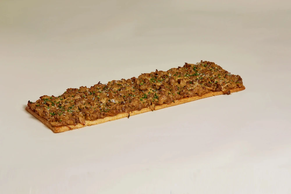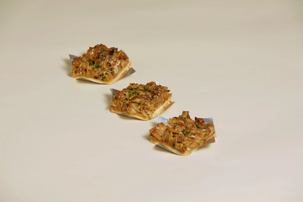Mini coca de setas y butifarra