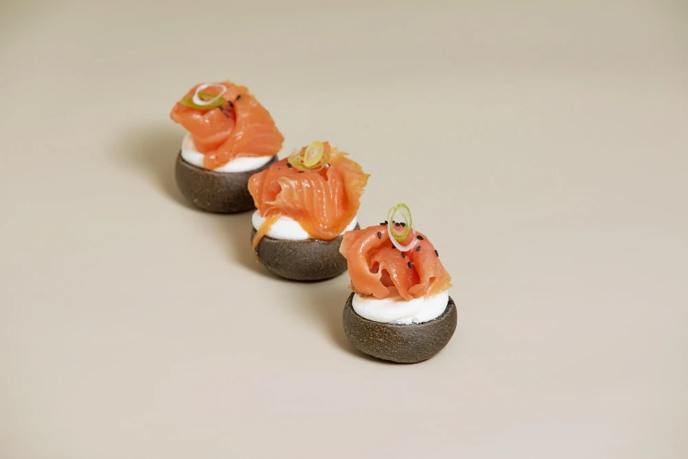 Mini focaccia de salmón y rúcula