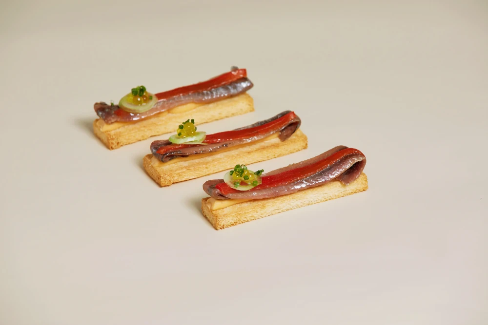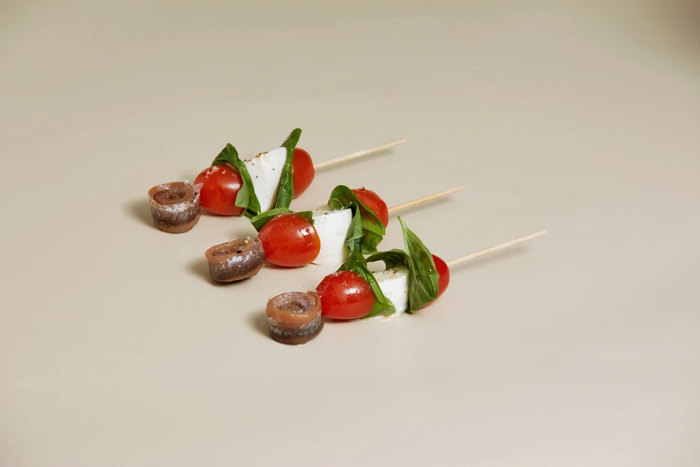 Brocheta caprese con anchoa