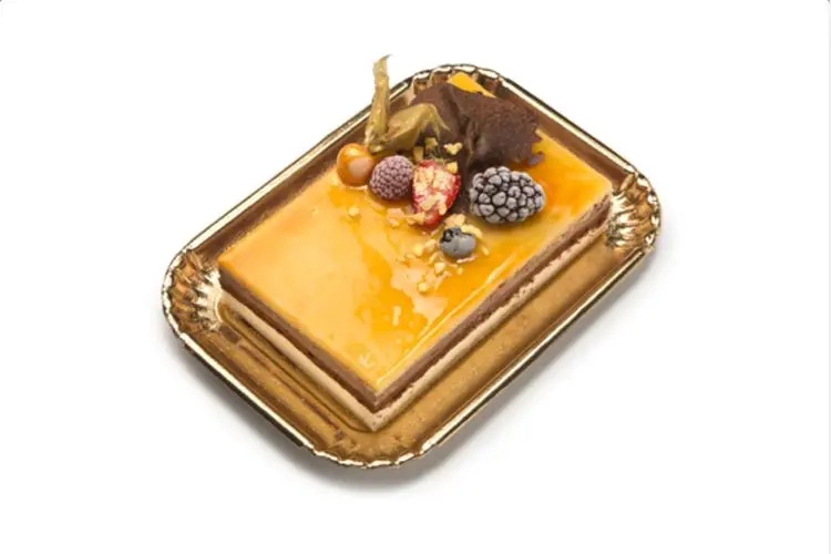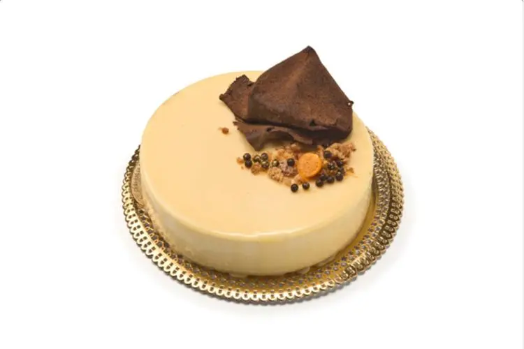 Pastel de chocolate blanco y crujiente de leche