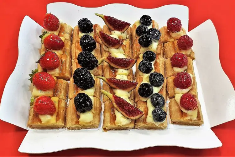 Variado de mini hojaldre con crema y fruta fresca de temporada.
